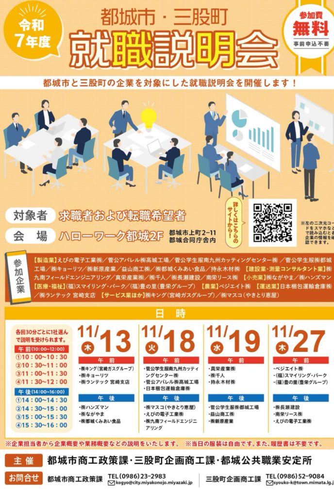『都城・三股 就職説明会』に参加いたします ebinodensi 2025年11月17日 No comments 『都城・三股 就職説明会』に参加いたします。 えびの電子は11月18日(火)、11月27日(木)の2回参加いたします。 未経験の方やブランクがある方も安心してご参加ください。 詳しくはこちらをご覧ください。